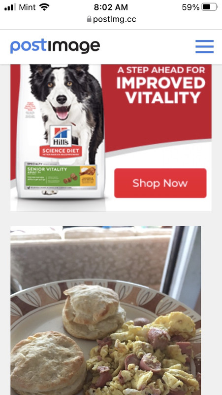 >>>> Homemade biscuits and scrambled eggs with cut up Vienna sausages. The