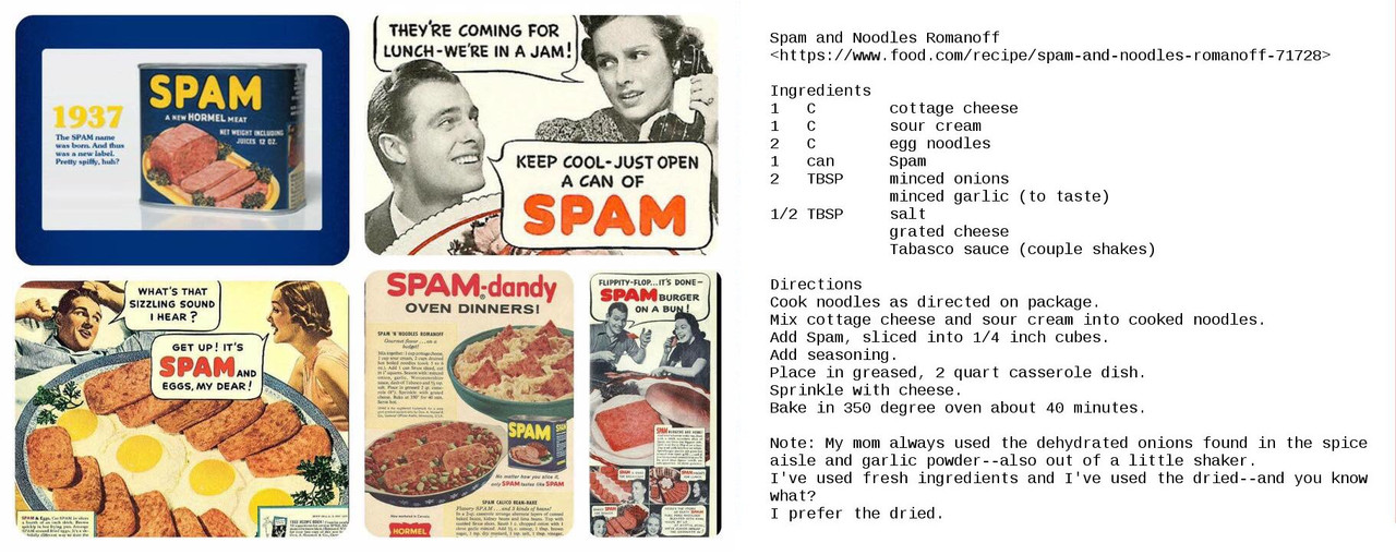 > To this day, I've never eaten SPAM. IIRC someone suggested it would be