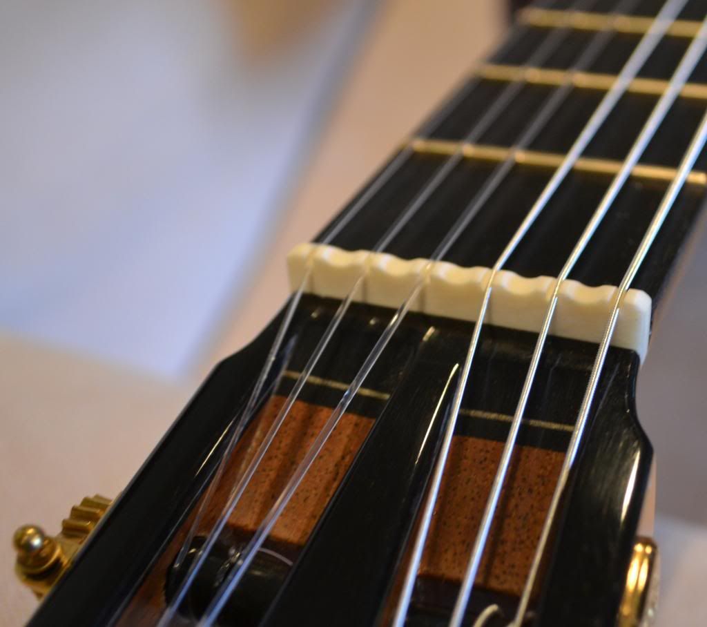 closed cell foam, 4"x10"x3/8", into the guitar at the heal. I use closed