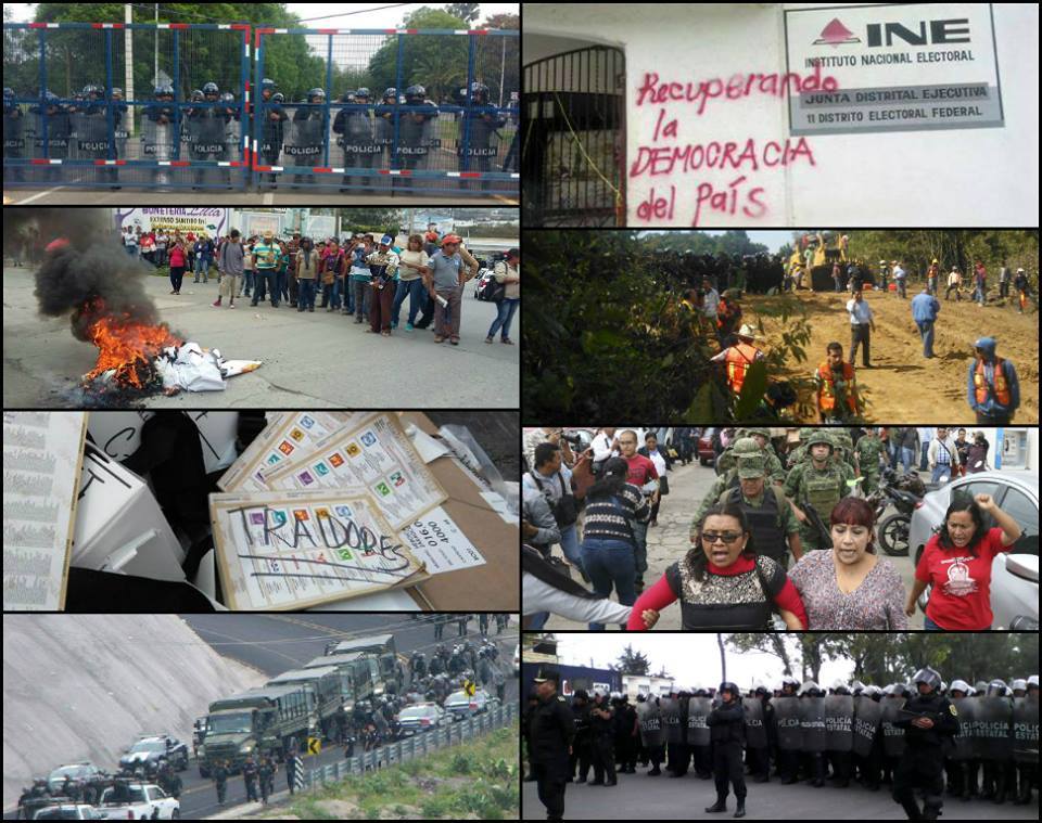 del INE, quema de boletas electorales, expulsión de las fuerzas armadas por