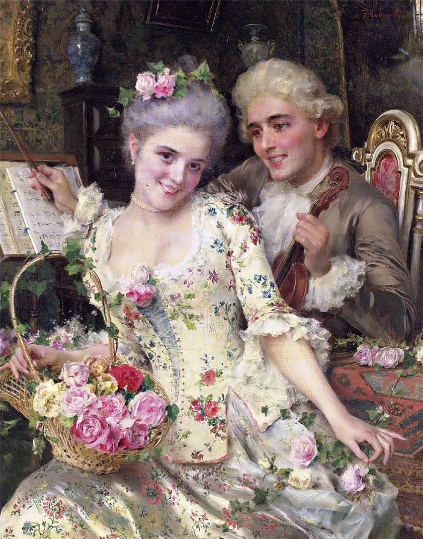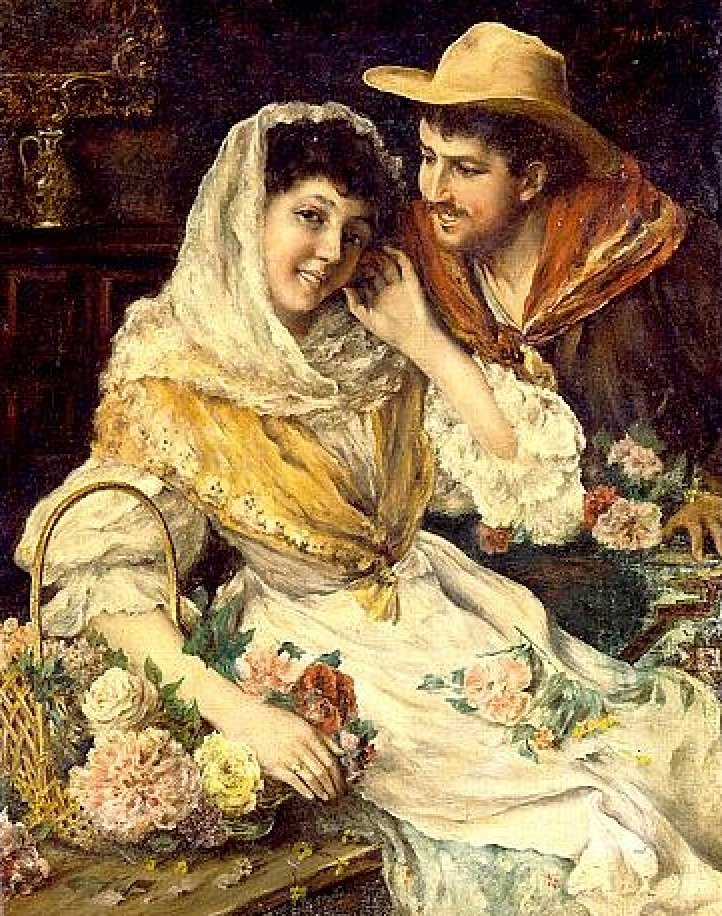 The Love Letter | Federico Andreotti ~ Italian Figurative painter Federico Andreotti, Italian painter, was born in Florenceand received his artistic training at the Academy in Florence. There he studied with Enrico Pollastrini (1817-1876), the President of the Academy, and Angiolo Tricca (1817-1884). His academic studies prepared him well for his chosen subject matter: historical figurative works set in the 16th and 17th centuries. The late 19th century saw a resurgence of interest in this period of legance and many artists, including Toudouze and Moreau, in France, Marcus Stone, in England and Madrazo, in Spain, also looked to satisfy the growing need for these works.