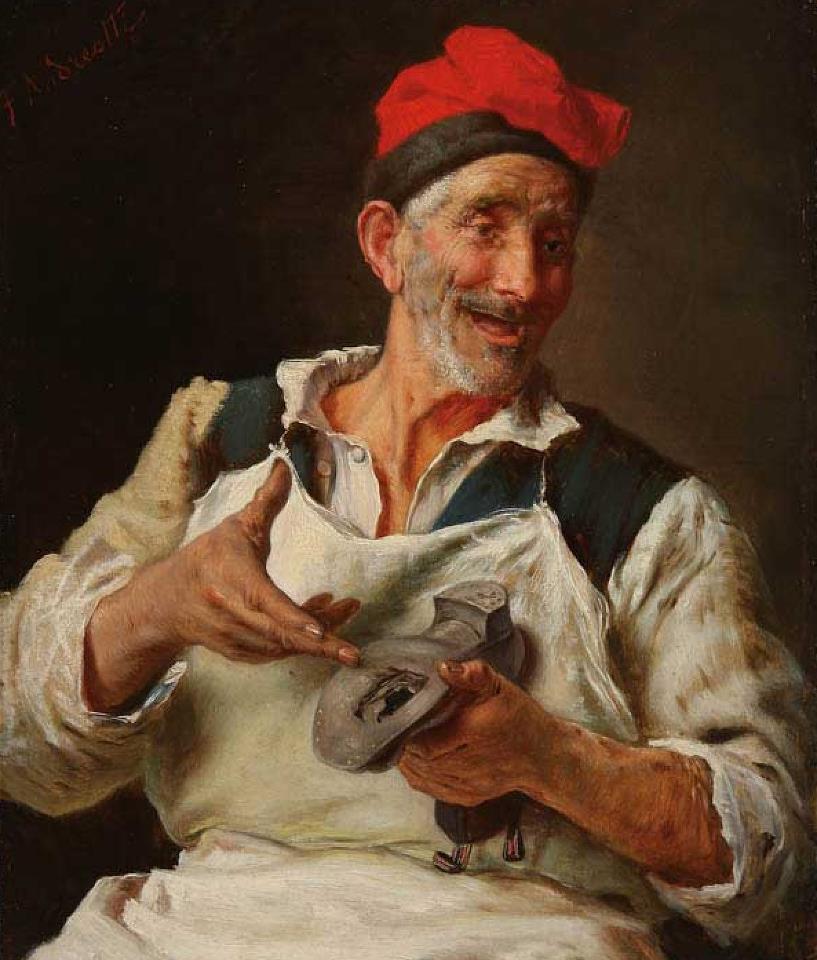 Andreotti�s paintings were sought after by American and European collectors alike and during the late 19th century he received an important commission from the King of Italy. While little is known about his exhibition history in�Florence, he did show a number of paintings at the Royal Academy in London from 1879-1883; including: Her First Exhibit 1879; A Happy Father of Twins 1881; A Village Maestro 1882 and From the Wrong Cask 1883.
