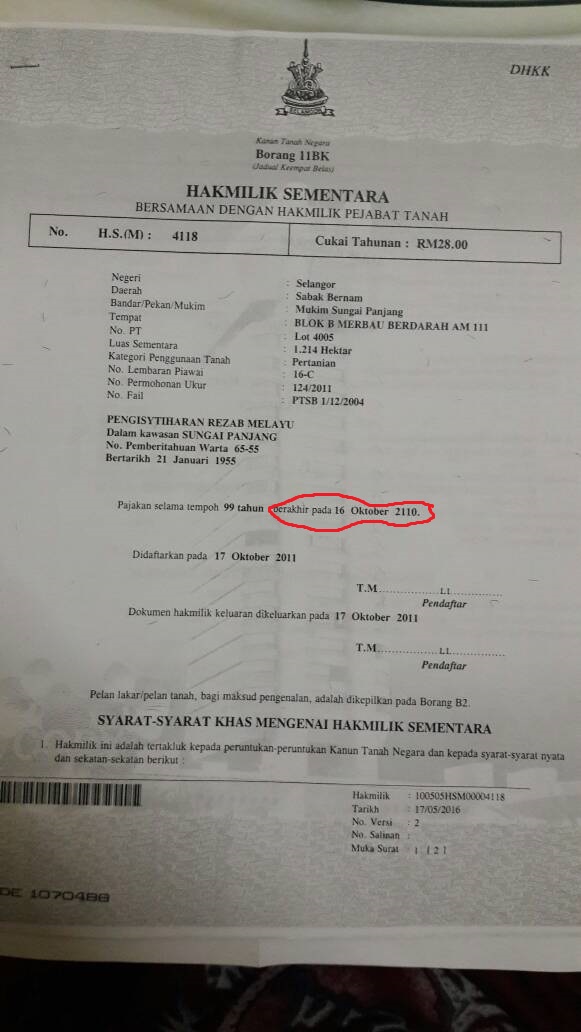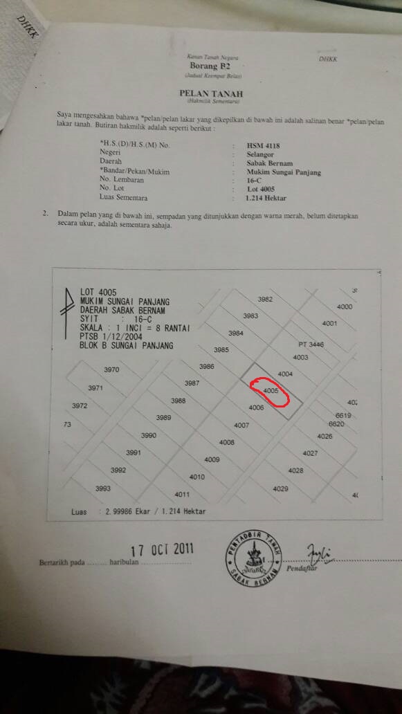 Keluasannya ialah dalam 3 ekar @ 1.214 hektar. Jenis Rizab Melayu Geran Pajakan 99 tahun (berakhir pada 16 oktober 2110 (92 tahun). Mempunyai pokok Kelapa Sawit dan sudah tidak diusahakan. Pemilik sangat memerlukan penjualan untuk Rawatan khusus. Harga yang dilepaskan ialah cuma pada RM 230K (sedangkan harga masa beli dulu pd 2011 ialah RM 220K) Tanah ini sangat sesuai untuk dibongkar semula untuk sebarang jenis pertanian lain @ ternakan. Ada akses jalan untuk sampai ke tapak tanah ini. Jarak perjalanan dari Jalan Besar Sg Panjang ialah cuma 1 km sahaja. Untuk melihat sendiri lokasi ini, temujanji hanya boleh dibuat pada masa cuti minggu @ cuti am sahaja. Sila hubungi saya untuk sebarang temujanji. Terima kasih. En Putra REN 00201 IEC Properties 012-2615337 (panggilan sahaja) 010-3056823 (panggilan @ whatsapp)