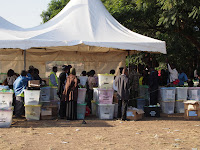 At this point, the PO’s job is done - she and her staff can go home and get some sleep, as can - in theory - the party agents and observers for that polling station. We were lucky here: our PO finished counting by midnight, and our results were in the CEC’s hands by 2:00 a.m. Many polling stations gave up the count overnight and resumed in the morning, with PO and staff sleeping with the ballots. When we visited other CECs the next day, some POs, sitting in the dust among the backlog, had slept with their ballots the last two nights and were looking like they were going to be spending another night sleeping in a schoolyard waiting to discharge their responsibility.
