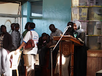 - Anyhow - Oley and I visited a few more constituencies throughout the day. Some were posh (the Stima Club in Kasanari), some... not so much (Mathari). Circling the block in Mathari, our driver wasn’t happy. “These are bad people here. Somali.” Granted, the neighborhood was a bit lower rent - chickens and ragpiles in the rutted dirt path that passed for a street; painted tin-roof shack dwellings dominating the roadside. I could have leaned my elbow on the roof of the colorful but somewhat ambitiously-named “Paradise Hotel”. But the folks we asked for directions seemed helpful enough - maybe it’s the magic of the Smurf shirt?