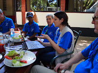 Also at this point, observers tend to swap off. Oley and I headed back to the Hillpark to give our LTOs (Long Term Observers - our regional leads) initial debriefs and qualitative observations. We’d been relaying the quantitative data back via forms on an android tablet as we found it, but getting all the Smurfs, er, I mean STOs in the same place was a good way to pick up on things that might not rise to the surface as a pattern if taken individually: “Oh yeah, that’s right - we noticed that, too, but I didn’t think anything of it!” It’s based on these data that the Carter Center puts together its preliminary statement, in this case, that in spite of long lines and technology fiascos (which contributed to the long lines), the voting itself seemed to go pretty well.