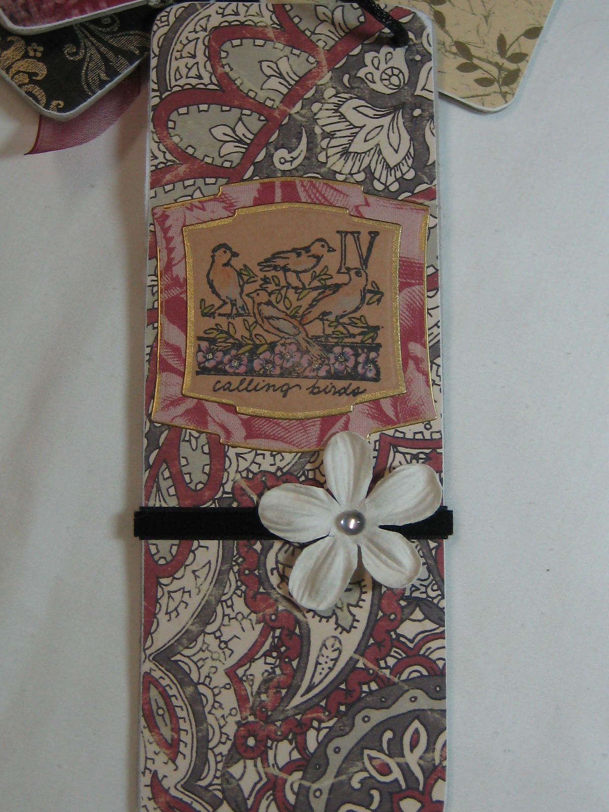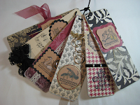 My friend Bonnie down at The Art Room in Franklin held a great workshop today! We made a box with chipboard tags in it, each side for the Twelve Days of Christmas. Bonnie is such an creative crafter - I wish I had her imagination! This will be a beautiful addition to my Christmas decor. Here are photos of the box, all the tags and then tags Day I through Day V. I'll post the rest tomorrow!