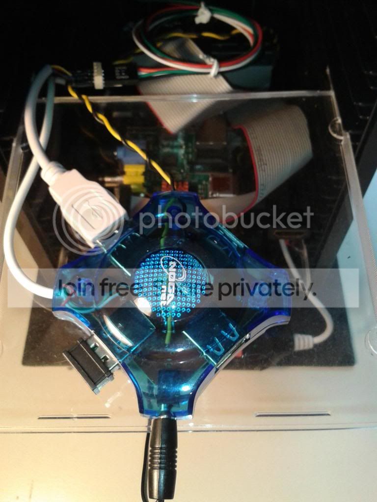 Pablo, Tenes que usar el cable USB sin la alimentación de la placa al hub, podes hacerlo vos, googlea "USB backfeeding"