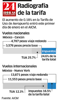 De acuerdo con cifras de la Secretaría de Turismo (Sectur), el Aeropuerto Internacional de la Ciudad de México (AICM) cuenta con la tercera tarifa de uso aeroportuario más cara en la región, que con el reciente incremento se ubica en 34.78 dólares por TUA internacional, por debajo de Panamá con 40 dólares y Bogotá con 37.