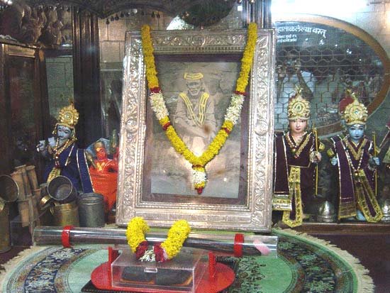 शिर्डी से श्री साँई बाबा जी की श्री कमल चरण पादुका एंवम सटके की यह तस्वीर बाबा जी के म्यूज़ियम से ली गयी है
