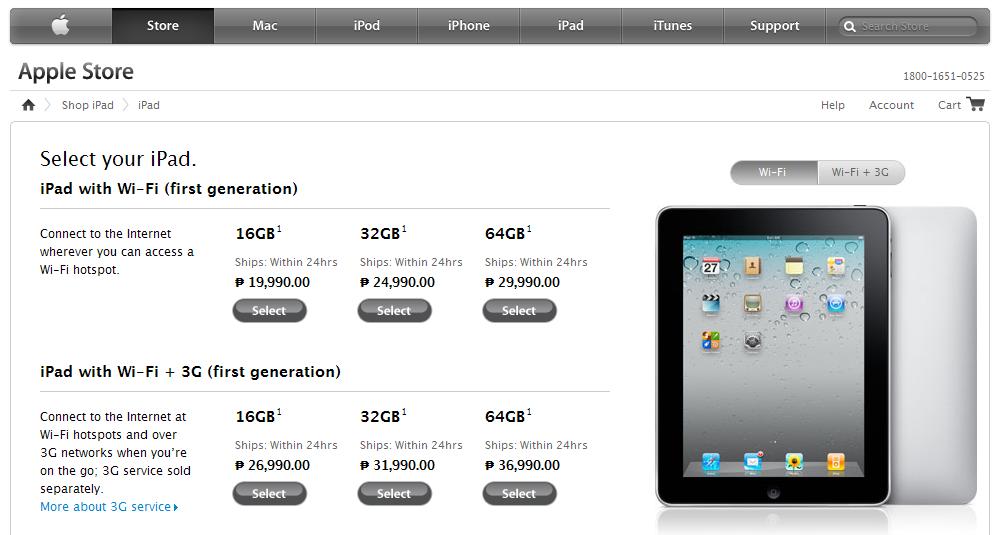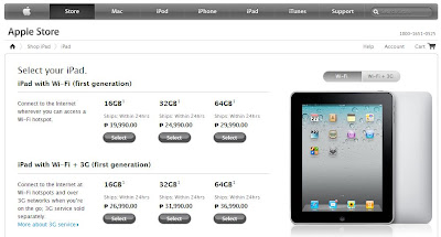| iPad Wi-Fi + 3G | Php 30,990 | Php 32,990 | Php 40,990 |