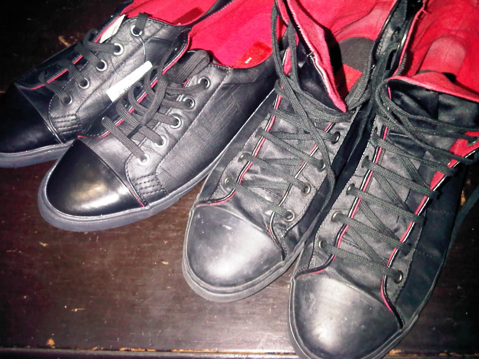 The one on the left (low cut) is the new one. The high cut was bought last July. They're almost the same, 'cept for the new one is in leather. the old one was in shiny fabric.