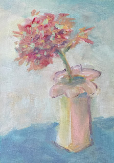I've got a number of small vases for single blooms, and while I'm getting organized at home you may see quite a few of these small flower paintings.