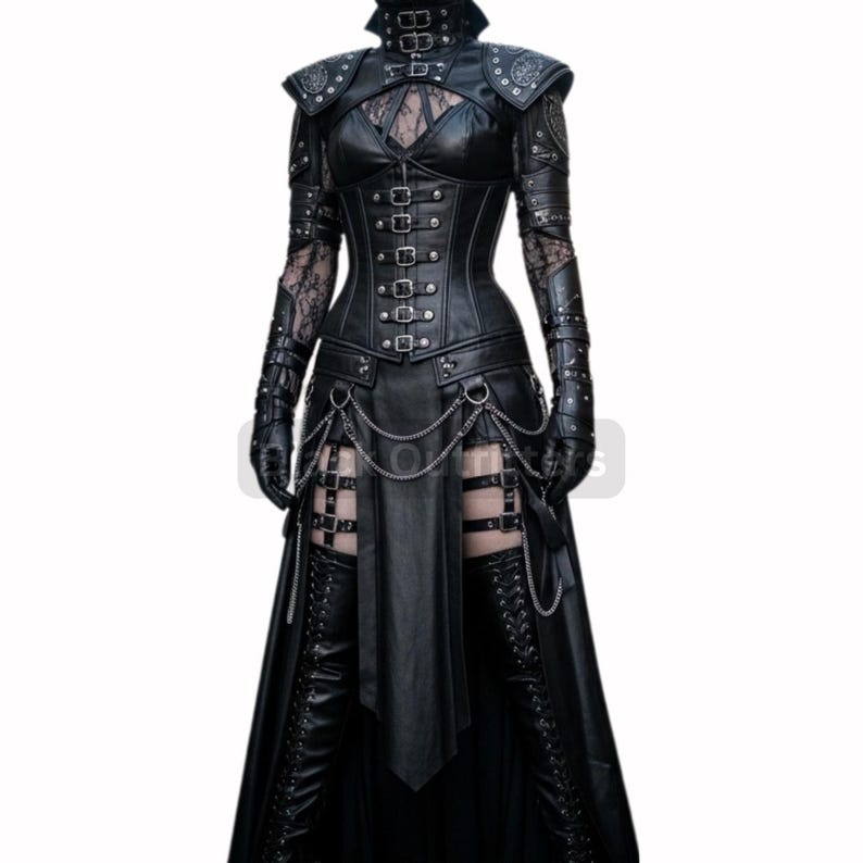 She pointed to the stall and there were at least four designs that stood out to her. A long black velvet like dress with splits along the sides and a beautiful star in the middle. One with a dark floral design and sequins that shimmered slightly along the silver chain threading. Nestled between those two was a black and lavender short dress, that had a shawl with frilly sleeves, and beautiful stars dangling by the neck. She also noted it had stars down the front made with some slightly sparkly fabric. One further back also caught her eye. It was a dress that was entirely leather made, with a great many buckles and chains that very much reminded her of archaic armor.