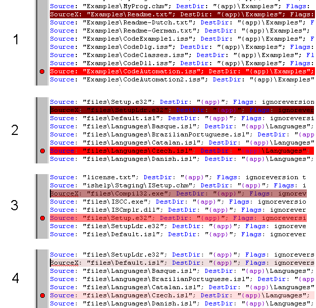 "Borland IDE" colors are used to highlight error lines and breakpoints.