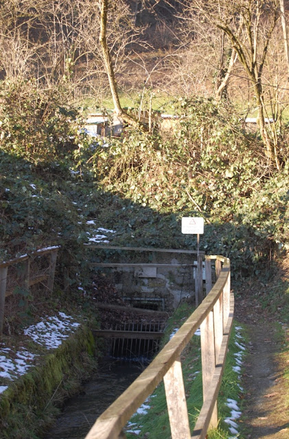 This is the Bürgermeisterloch ("Mayor's Hole"), where the Almkanal dives under the Mönchsberg to deliver water to the other side of the ridge. (P/C Salzburg Wiki.) Those berry vines are vicious. |