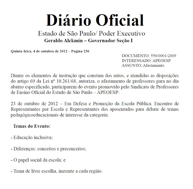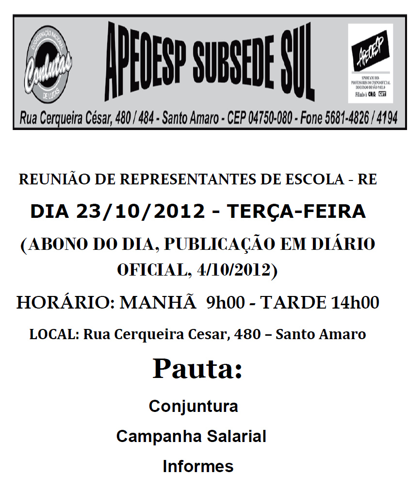 [APEOESP - Santo AMARO] REUNIÃO DE REPRESENTANTES DE ESCOLA - 23.10.2012