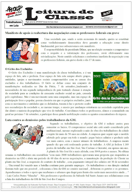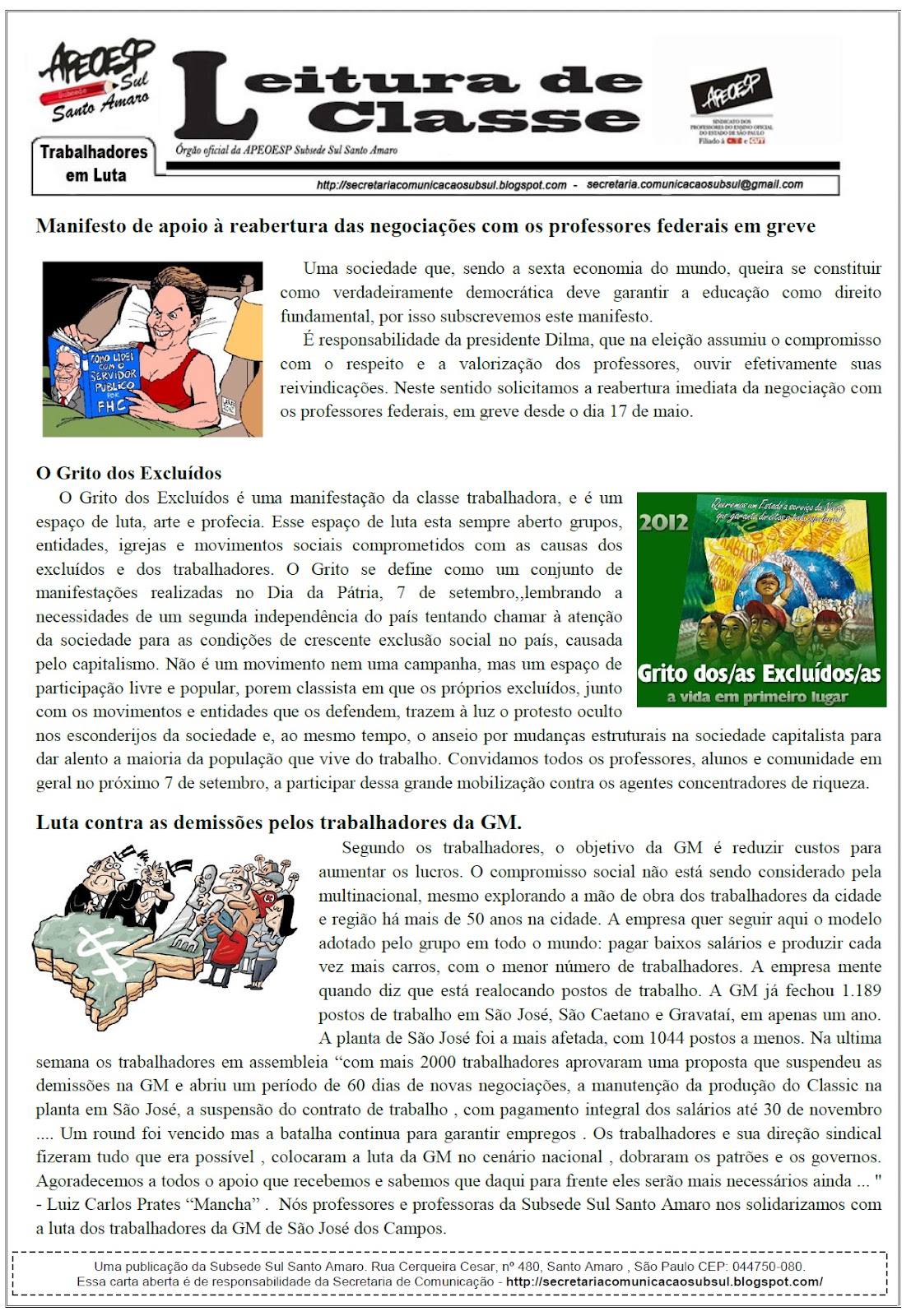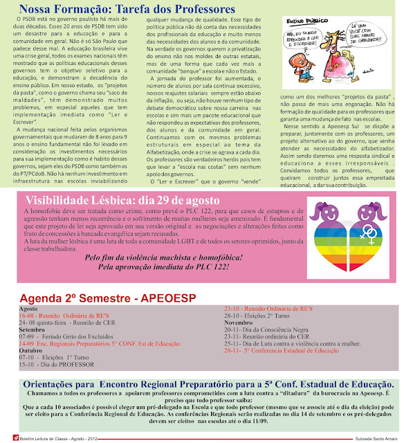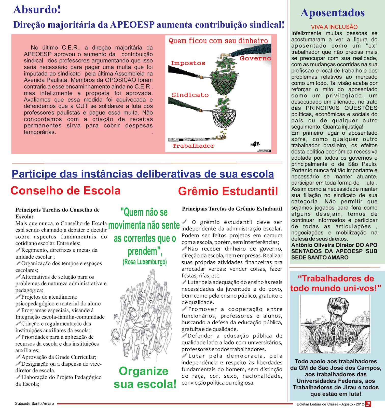 [APEOESP - Santo AMARO] Leitura de Classe / APEOESP SANTO AMARO - Agosto 2012