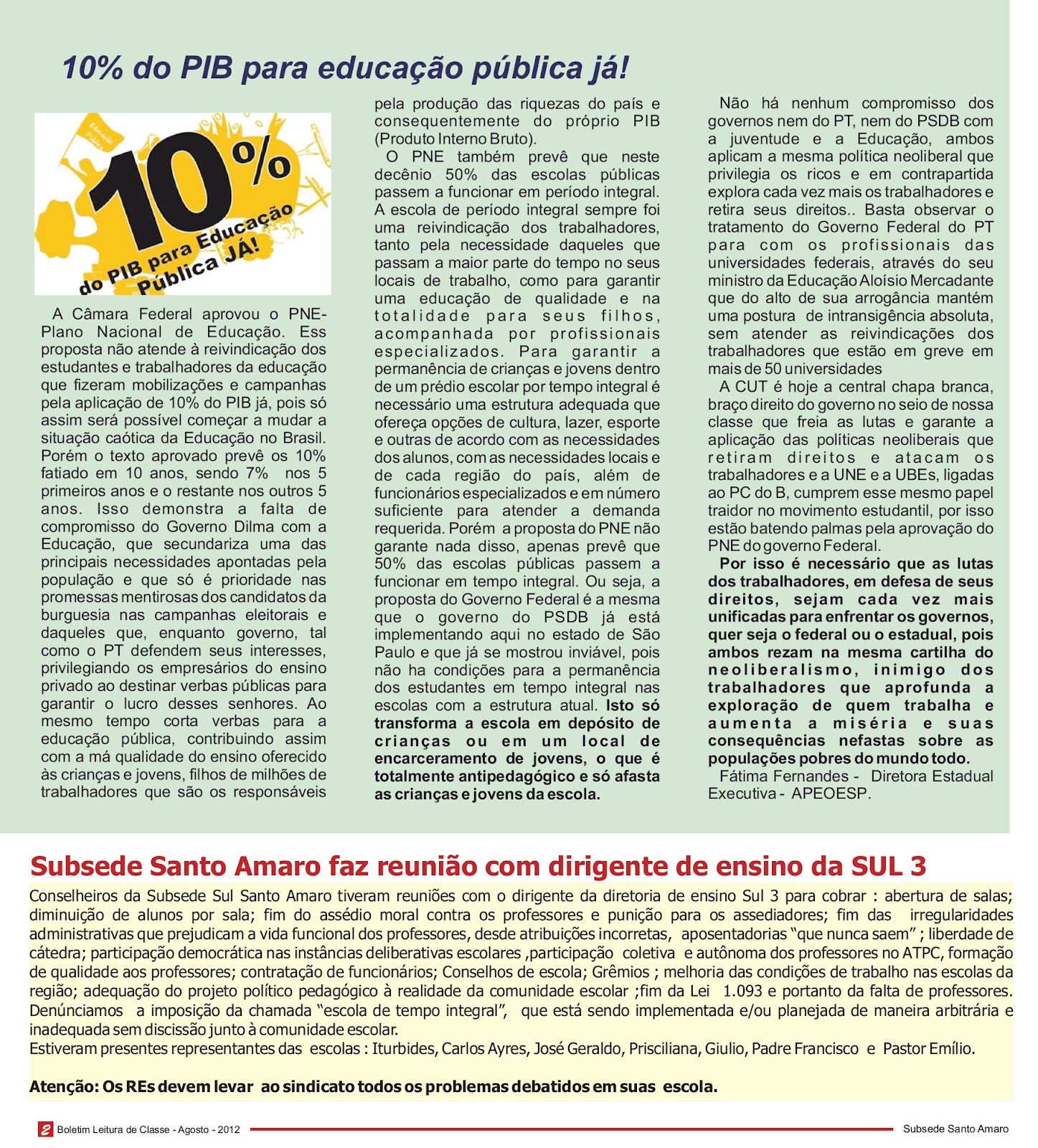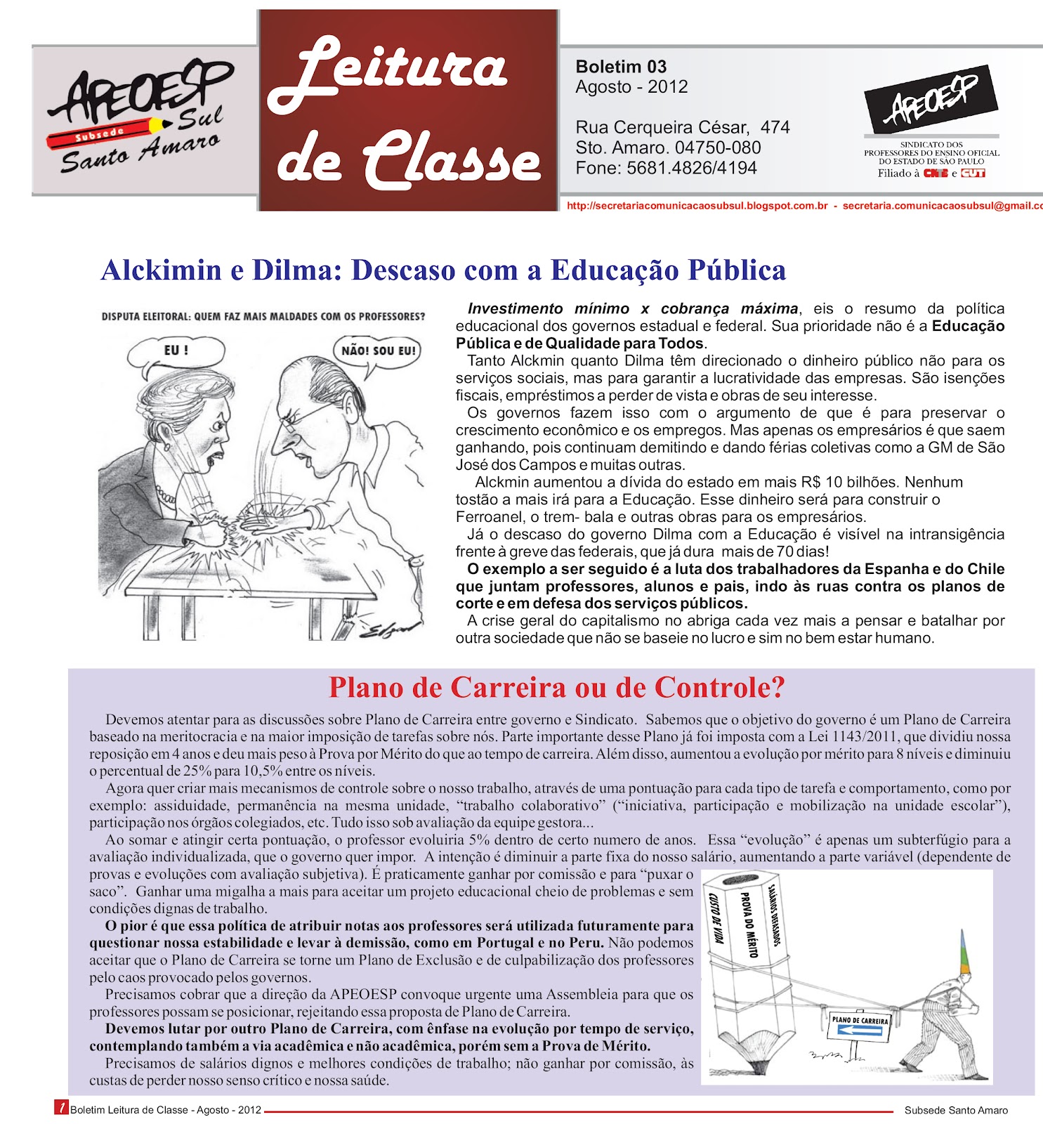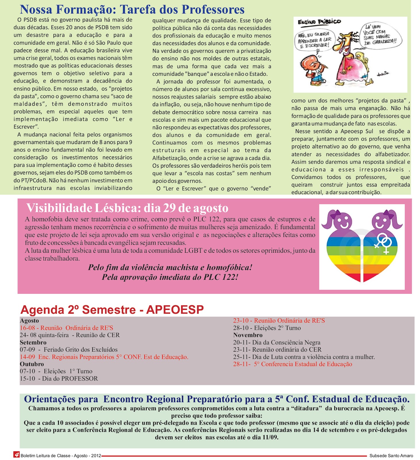 [APEOESP - Santo AMARO] Leitura de Classe / APEOESP SANTO AMARO - Agosto 2012