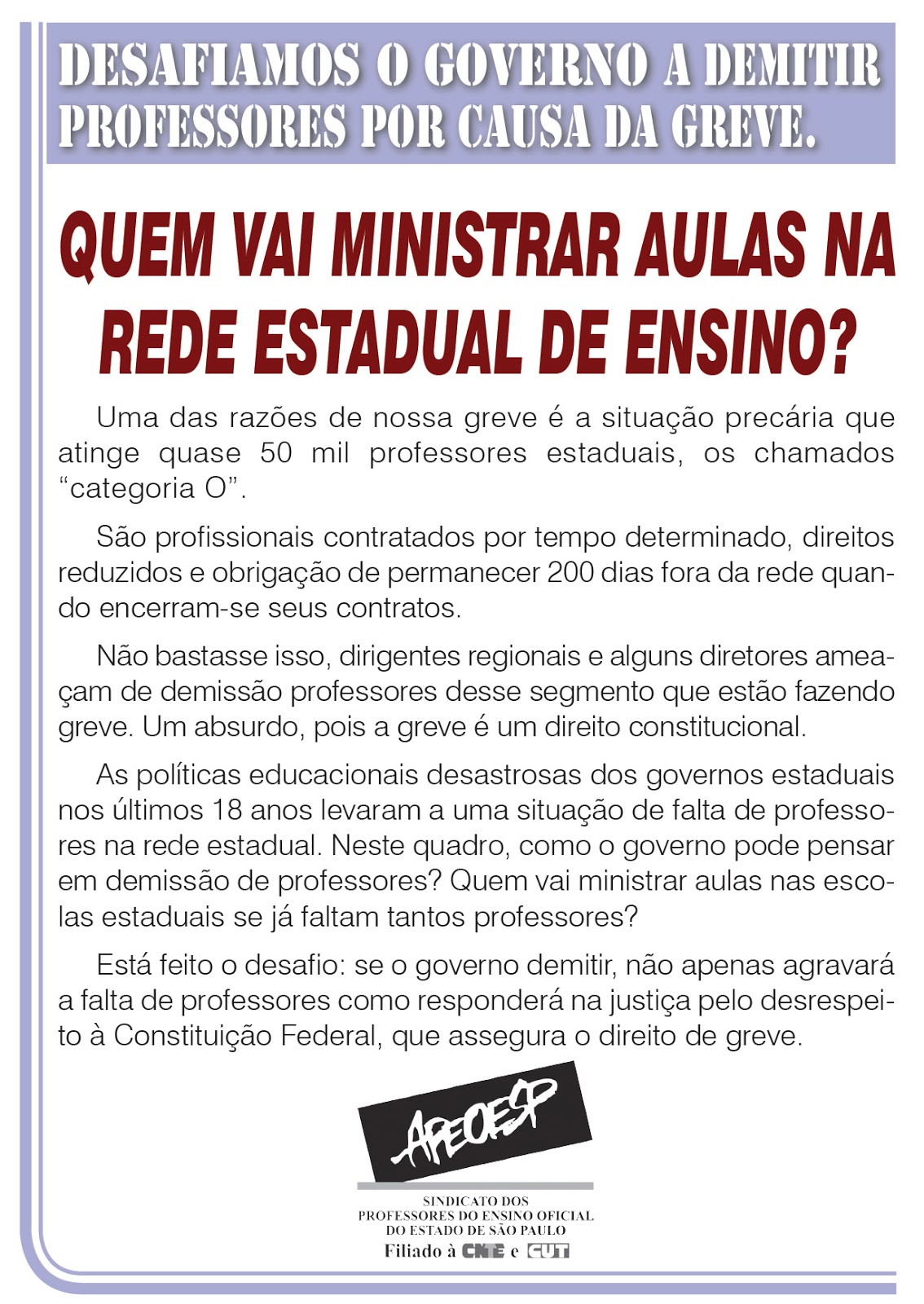 [APEOESP - Santo AMARO] APEOESP Urgente - N° 17 - Professores decretam Greve por tempo indeterminado!