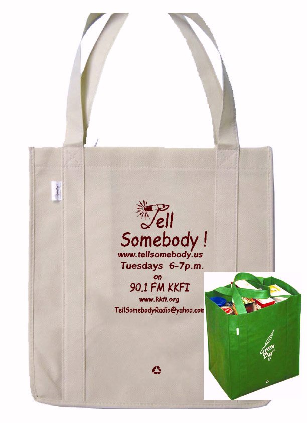 I've got just 5 re-usable, recycled, recyclable Tell Somebody grocery bags left to thank the first 5 callers who donate $60 or more to KKFI on a credit card. Call 888-931-0901 tonight, February 8, at 6pm central time. Suppport your community radio station and listen to Robert McChesney.