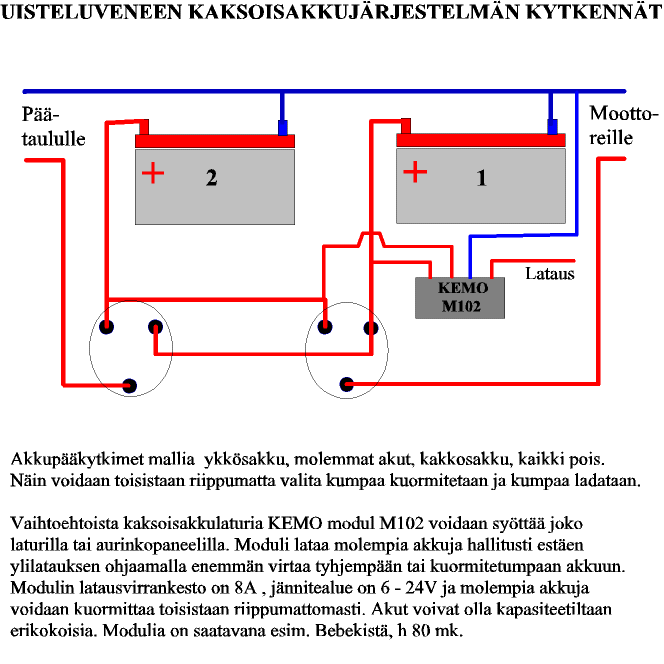 Rakensin edelliseen purjepaattiini 2 akkujärjestelmän, jossa ei ollut