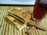ندهن العجينة بالزبدة جيداا و بالتساوى باستخدام فرشة ثم نضع القرفة و السكر و