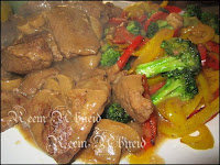 في مقلاة على النار نضع القليل من الزيت ثم نضيف قطع الستيك ونقلبها من