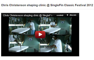 Chris Christenson, nella shaping room di Marco Rizzo alias Dr.Ank ha dato dimostrazione delle proprie abilità di shaping nella speciale occasione pre-festival offerta dalla Cosmic Night lo scorso luglio, frutto della collaborazione a due tra lo shaper californiano ed il nostrano Marco, che si occupato dell'opera di glassing.