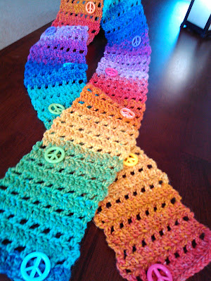 Lay out your scarf with the right side facing. Arrange the peace signs in an attractive