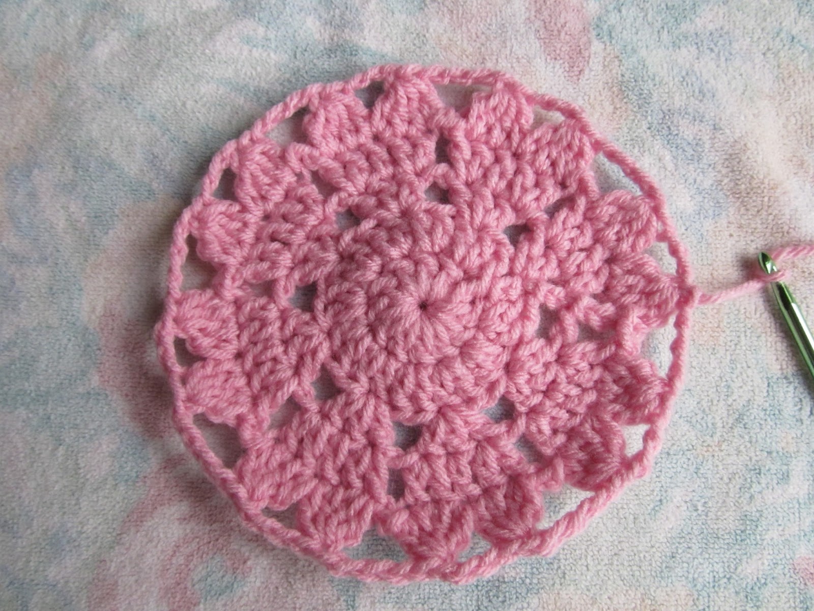 of beg ch-3. (24 dc, 8 ch-1 sps)