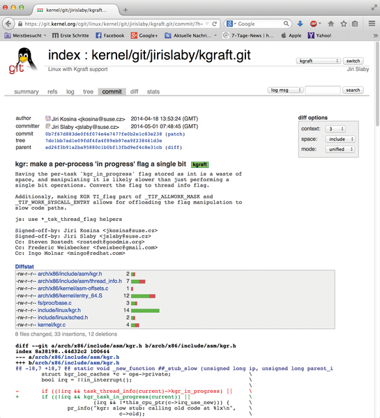 First, the similarities: Like SUSE's kGraft, Kpatch latches into the kernel via the Ftrace subsystem that GCC automatically includes at compile time. Ultimately, Kpatch thus fields function calls in a very similar way. Unlike kGraft, however, Kpatch is a kernel module itself; admins do not need to patch the host kernel.