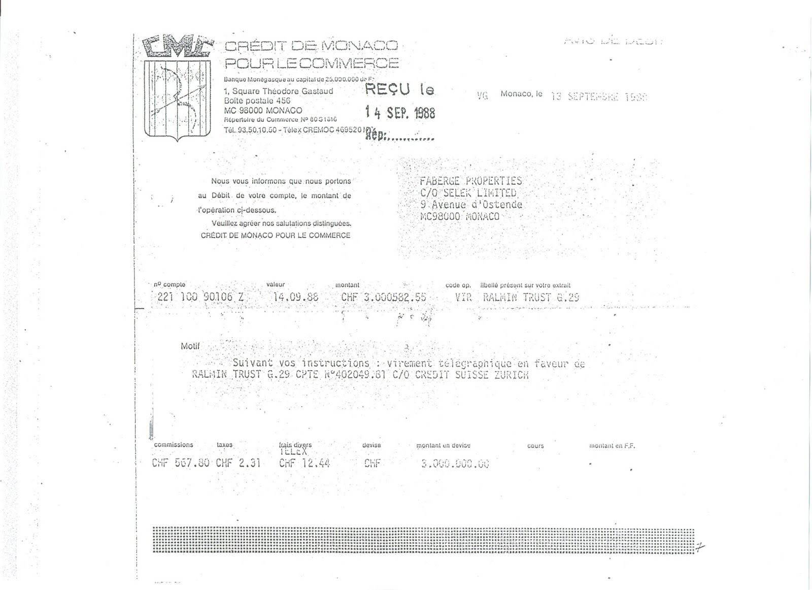 (صوره ضوئيه لاحدى التحويلات البنكية للحساب السري التابع لمدير عام المؤسسة)