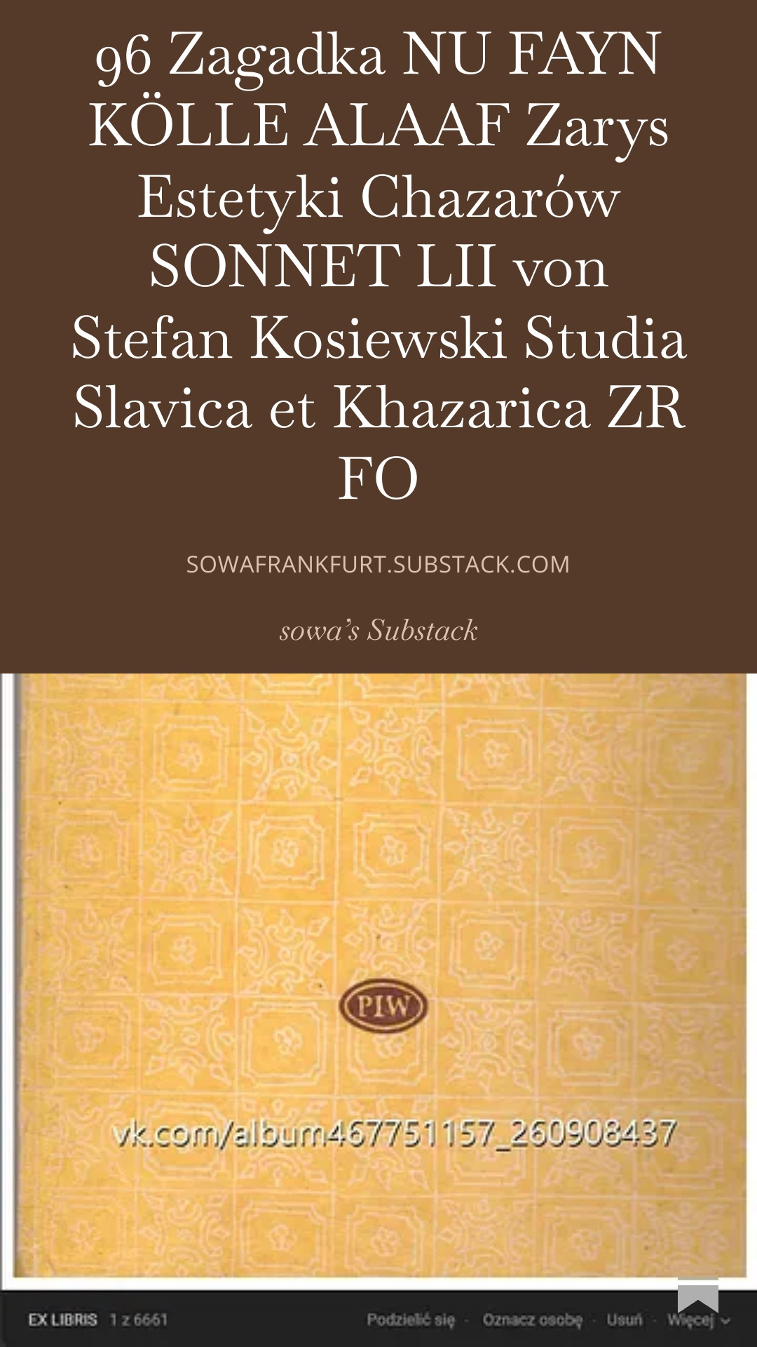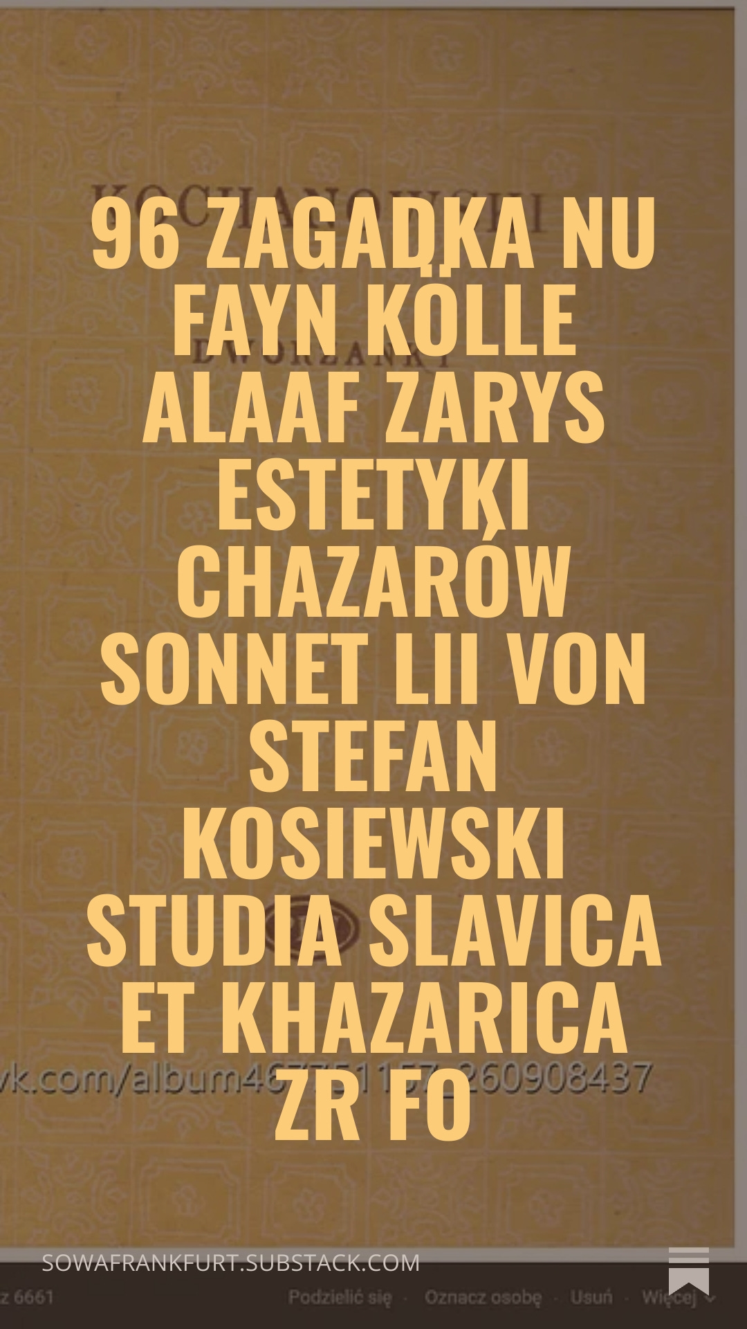 96 Zagadka NU FAYN KÖLLE ALAAF Zarys Estetyki Chazarów SONNET LII von Stefan Kosiewski Studia Slavica et Khazarica ZR FO