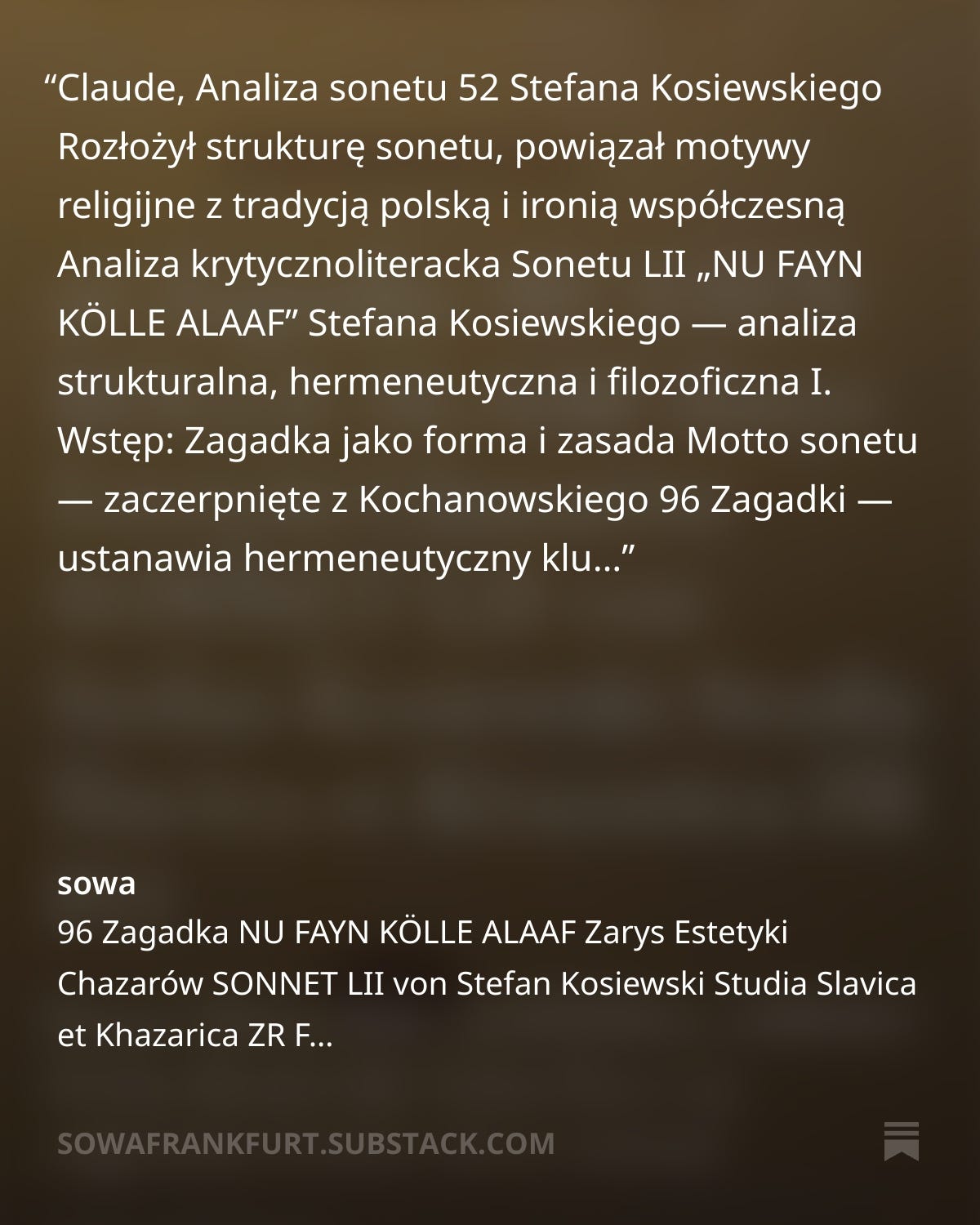Rozłożył strukturę sonetu, powiązał motywy religijne z tradycją polską i ironią współczesną linkedin.com/posts/stefankosiewski_96-zagadka-nu-fayn1-kölle-alaaf2-zech-activity-7444334539759525888-W5wy