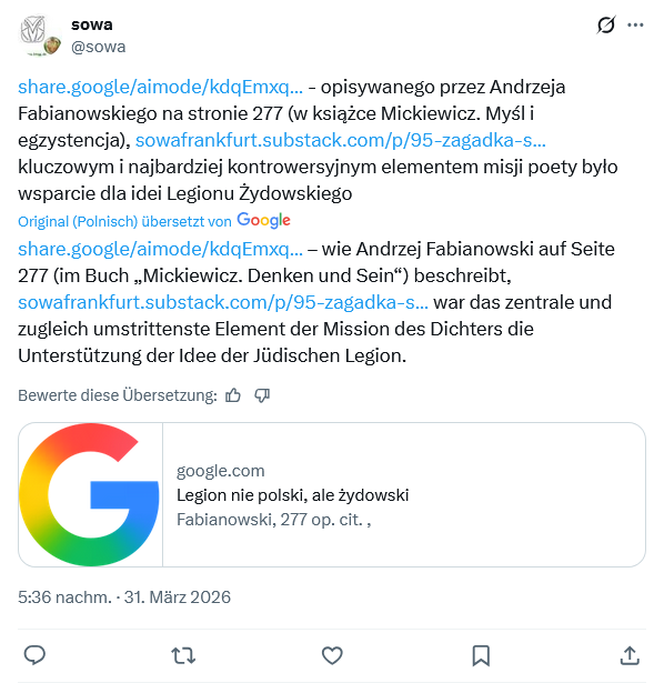 google.com Legion nie polski, ale żydowski Fabianowski, 277 op. cit. , 5:36 nachm. · 31. März 2026