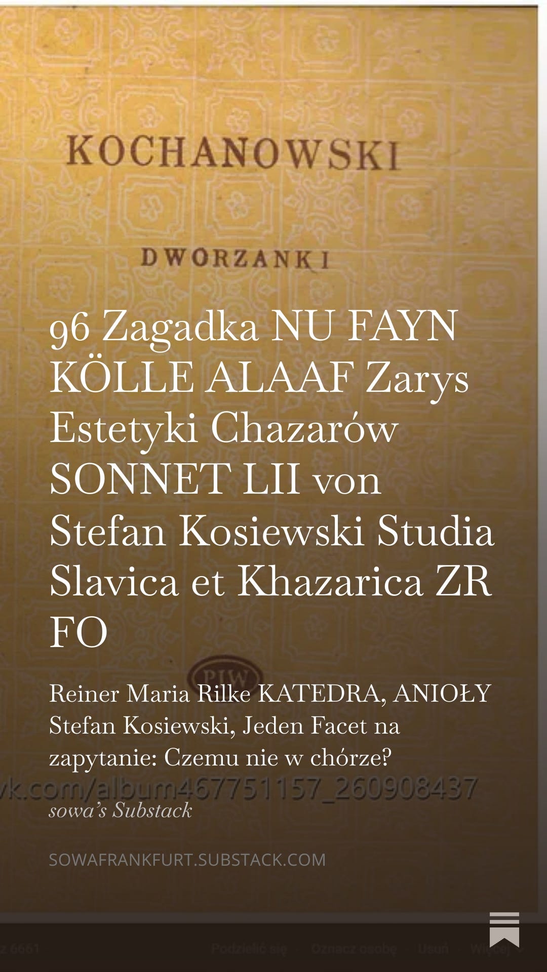 Katedra w Kolonii za kasą! 96 Zagadka NU FAYN KÖLLE ALAAF gloria.tv/post/CDXqvuJQ9… Zarys Estetyki Chazarów SONNET LII von Stefan Kosiewski open.substack.com/pub/sowafrankf… Studia Slavica et Khazarica ZR FO Reiner Maria Rilke KATEDRA, ANIOŁY