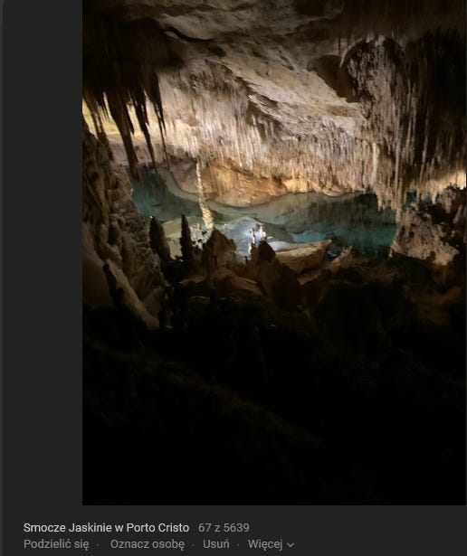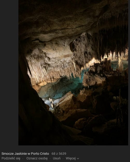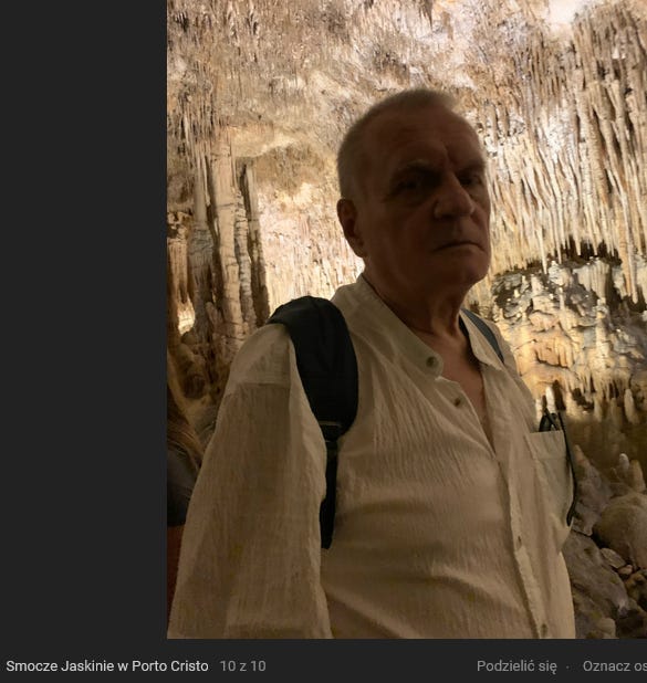 We must begin with self-criticism. The initial analysis of “Azure Poem” made the most serious error: it treated the work as a finished text, rather than as a living semiotic process that drips with meaning like water from a stalactite in a cave. It ignored the fact that Kosiewski does not write a “poem”—he carves out a form of existence over time, in which meanings crystallize, like dripstones in a dragon’s den. Only reading letters from Majorca (Porto Cristo and Valldemossa) and an exchange with Grok allow us to understand that “Azure Poem” is not a collection of allusions, but a map of the movement of consciousness between three points of a hexagon: Czeladź—Balearic Rocks—Monastery of Silence.