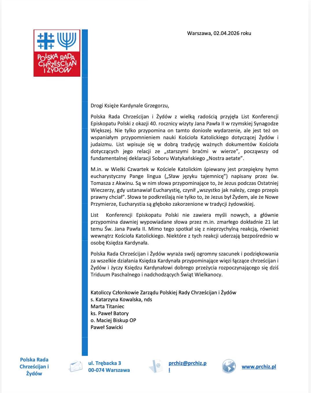 [1] Polska Rada Chrześcijan i Żydów · List poparcia dla ks. kard. G. Rysia od katolickich członków Zarządu PRChiŻ facebook.com/photo/?fbid=122216004734569141&set=a.122105501072569141