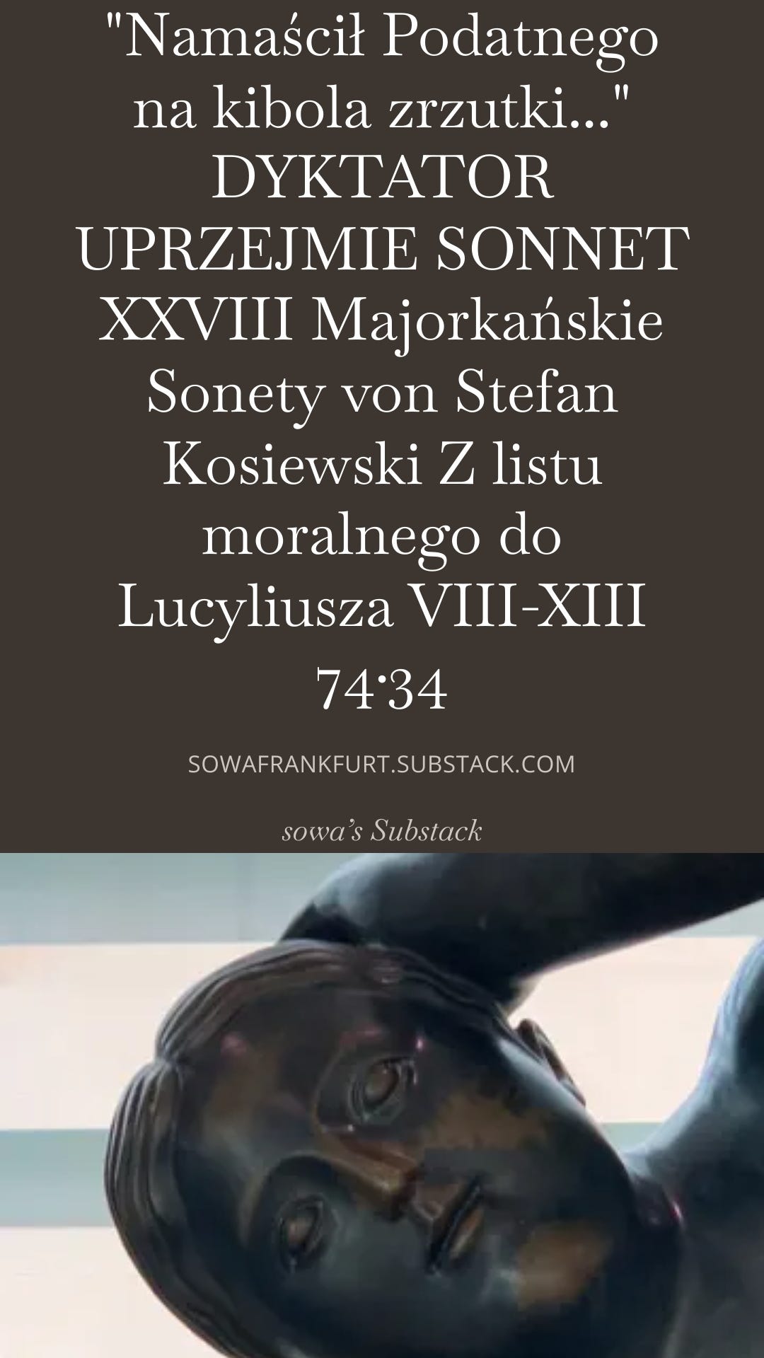 "Namaścił Podatnego na kibola zrzutki..." DYKTATOR UPRZEJMIE SONNET XXVIII Majorkańskie Sonety von Stefan Kosiewski Z listu moralnego do Lucyliusza VIII-XIII 74·34