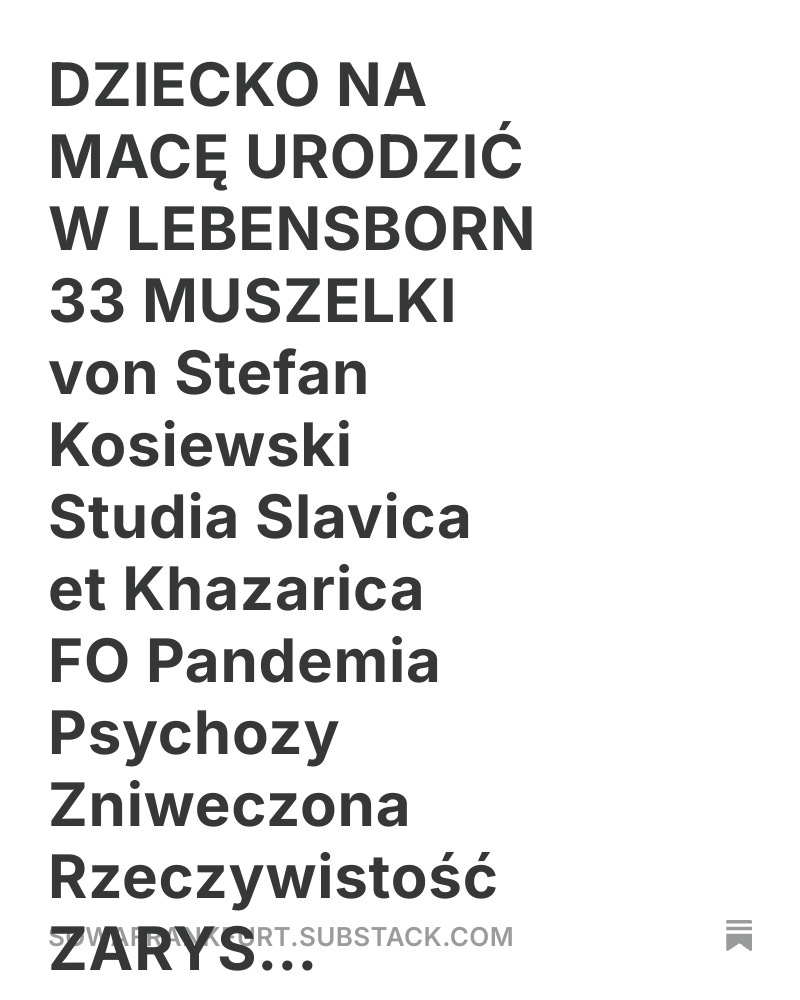DZIECKO NA MACĘ URODZIĆ W LEBENSBORN 33 MUSZELKI von Stefan Kosiewski Studia Slavica et Khazarica FO Pandemia Psychozy Zniweczona Rzeczywistość ZARYS ESTETYKI CHAZARóW ODżYDZANIE