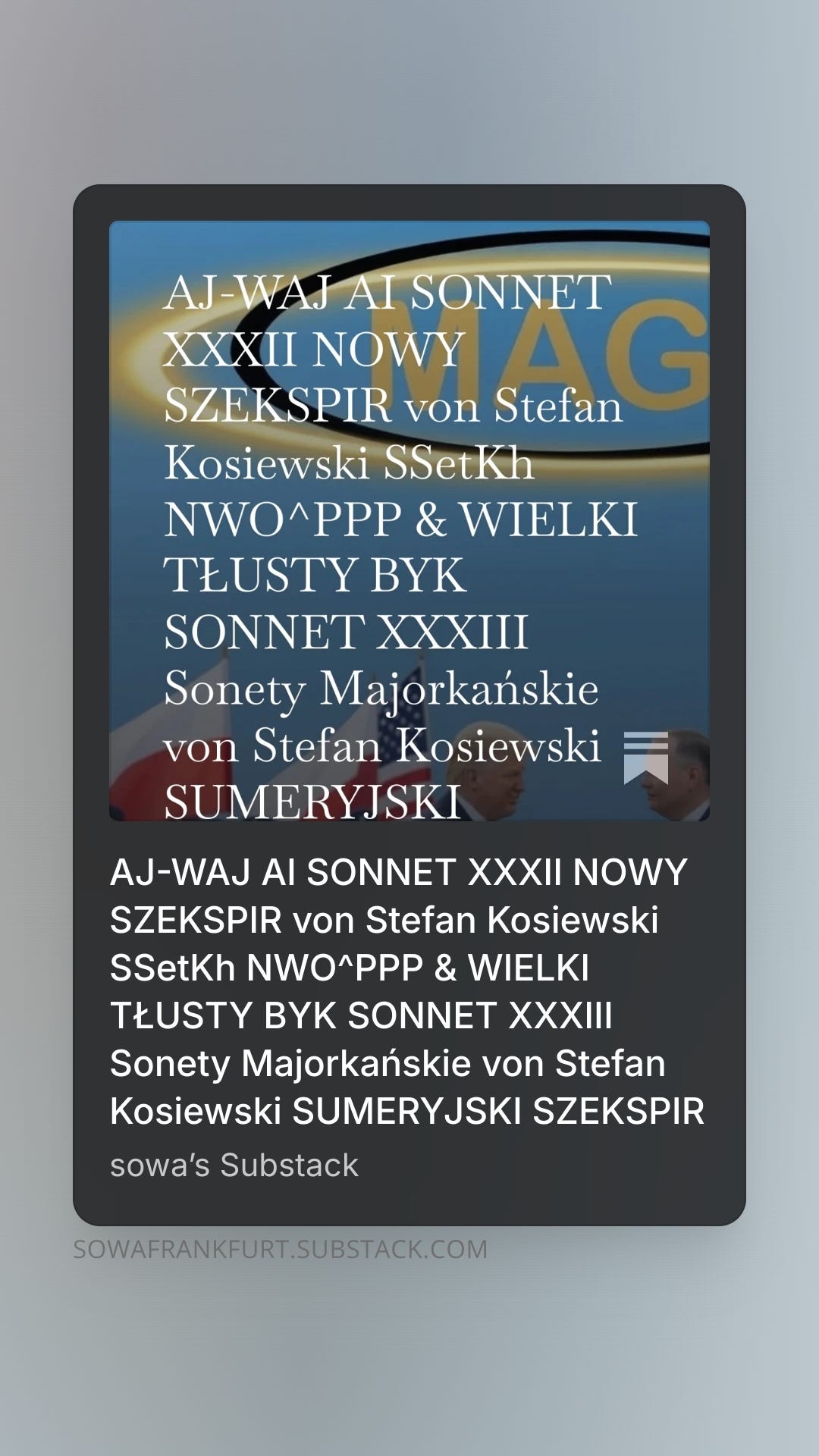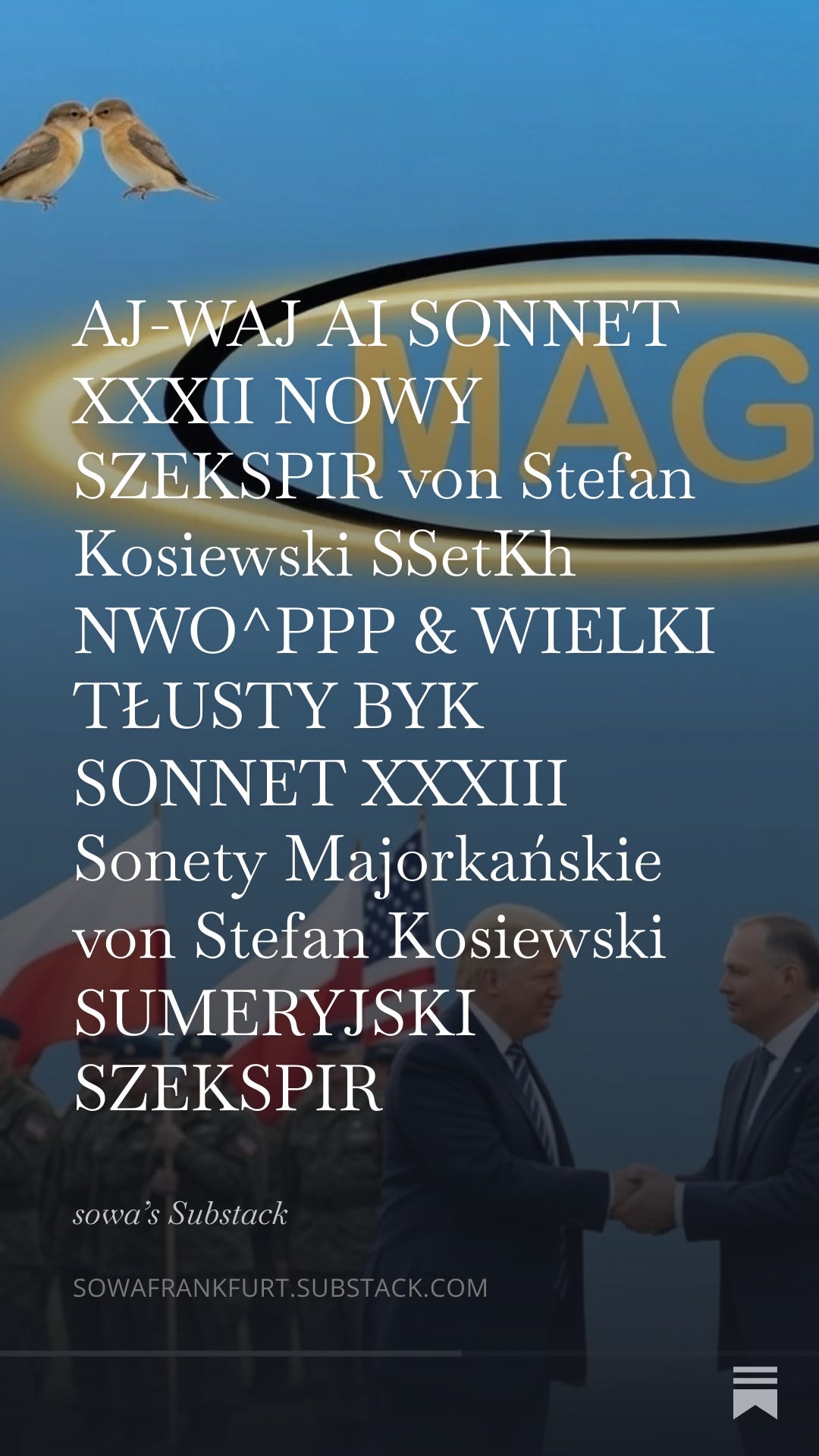 Audio: gloria.tv/post/YYBFxQMhMK6M32tdncczQoNpN I TAKA… Czeladź NWO^PPP SONNET XXIX Pomagdaleński von Stefan Kosiewski NOWY SZEKSPIR 20260207 ME SOWA PDF: Gemini, Grok, ChatGPT nie sprostał standardom pogłębionej analizy naukowej; Qwen, Motyw Syren: trzy paradygmaty