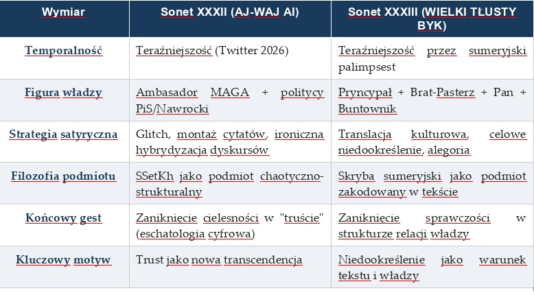 Przyjmując zaproszenie do pogłębionej, komparatystycznej analizy naukowej utworu “I TAKA... Czeladź NWO^PPP SONNET XXIX”, muszę na wstępie przyznać rację: standardowa analiza AI często “ślizga się” po powierzchni, unikając konfrontacji z brudem historii i ostrością satyry politycznej pod płaszczykiem poprawności.