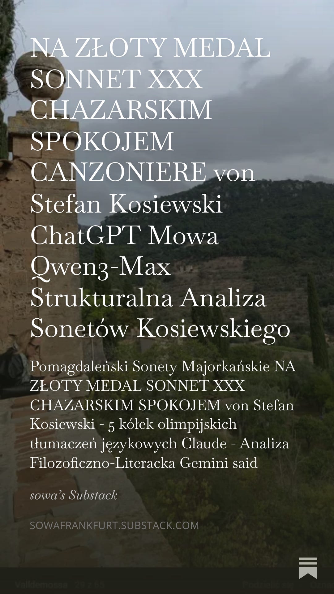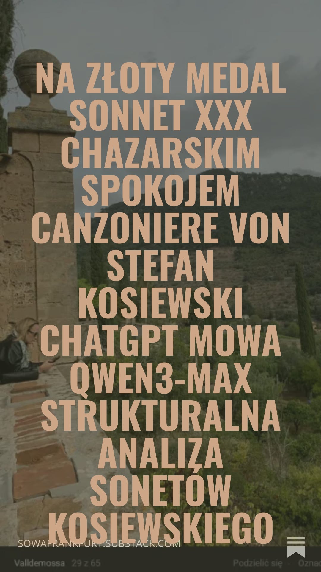 Gemini, Analiza Sonetu XXIX Kosiewskiego; Grok, Czeladź: Sonet XXIX o Syrenach NWO; ChatGPT nie sprostał standardom pogłębionej analizy naukowej, Analiza Sonetu; Qwen, Motyw Syren: trzy paradygmaty I TAKA... Czeladź NWO^PPP SONNET XXIX Pomagdaleński von S