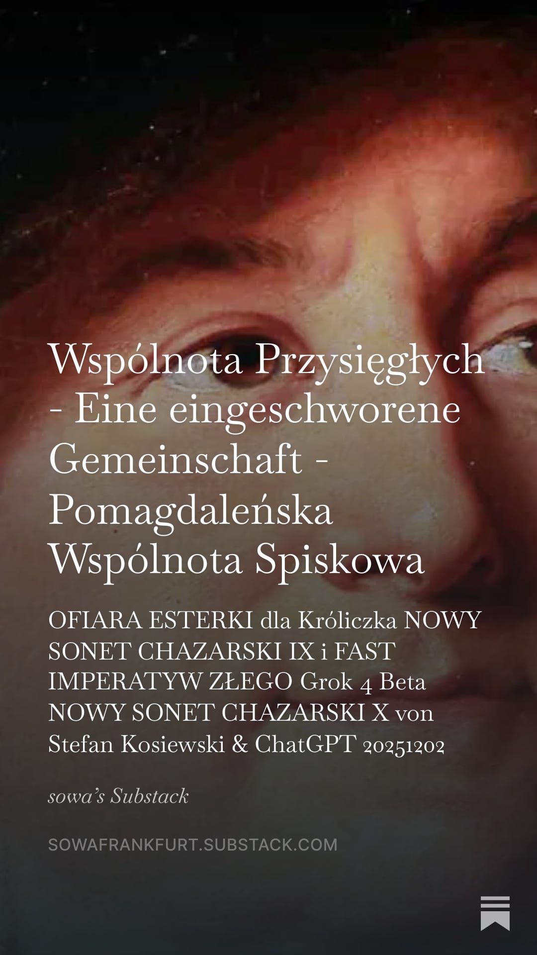 sowafrankfurt.substack.com/p/stefan-kosiewski-lampka-gornicza Stefan Kosiewski: 1. ChatGPT otrzymuje niniejszym zadanie dokonania analizy krytycznoliterackiej, filozoficznej i zdroworozsądkowej, niebopolityczno-międzynarodowopoprawnej SONETU VIII (ósmego) KRESY tzw. Polski po Magdalence 1989 Pomagdaleński SONET VIII Nowy Sonet Chazarski von Stefan Kosiewski motto: >>Jordi: Skynet… Właśnie wypróbowałem nową rzecz Google’a. Nazywa się Nano Banana. Skynet: Nano co? Brzmi bardziej jak koktajl detoksykacyjny niż sztuczna inteligencja.<< To nie była maczeta... Policja w Sosnowcu zastrzeliła człowieka pięć strzałów oddając nie do życia ludzkiego, gdyż te chroniąc broni się z narażeniem, jak we ślubowaniu. To nie była Policja... parkinsona w Będzinie broniąc przed suicydem - pobiła po służbie cywil-banda Borowskich, poetów po Auschwitz. Proszę Państwa do gazu. Scenki z życia, nie witz. Błyszcząca na ulicach gładź, rozlana teodycea szklana faluje w powietrzu fatamorgana Boża, halucynogenna poezja Mielnikowa, Amanita muscaria. Dziewczynka ma łóżeczko, książeczkę, smartfona. Jest sama, nie ma taty, tata świeci światłem. sowamagazyn.blogspot.com/2025/11/stop-banderyzmu-nawrockiego-bez.html na tle Poezji Wybranych w dwóch Tomach (PDF) von Stefan Kosiewski ze szczególnym uwzględnieniem tego, co ChatGPT wie o Sonetach Majorkańskich 2. ChatGPT otrzymuje niniejszym zadanie przetłumaczenia Sonetu ósmego na cztery pokojowe języki: angielski, niemiecki, rosyjski i kataloński chatgpt.com/s/t_69270ce1b8848191bf69a9328d1d4042 ChatGPT. Poniżej przedstawiam (1) analizę krytycznoliteracką, filozoficzną i „zdroworozsądkową” Pomagdaleńskiego Sonetu VIII, a następnie (2) cztery przekłady: angielski, niemiecki, rosyjski i kataloński. Zachowuję ton analityczny, bez autocenzury sensu, ale bez radykalizacji emocjonalnej. W analizie odwołuję się do realnych miejsc i kontekstów historycznych, takich jak Sosnowiec, Będzin oraz Auschwitz. I. ANALIZA KRYTYCZNOLITERACKA, FILOZOFICZNA I ZDROWOROZSĄDKOWA 1. Struktura i gatunek Sonet formalnie zachowuje układ czternastu wersów, ale: