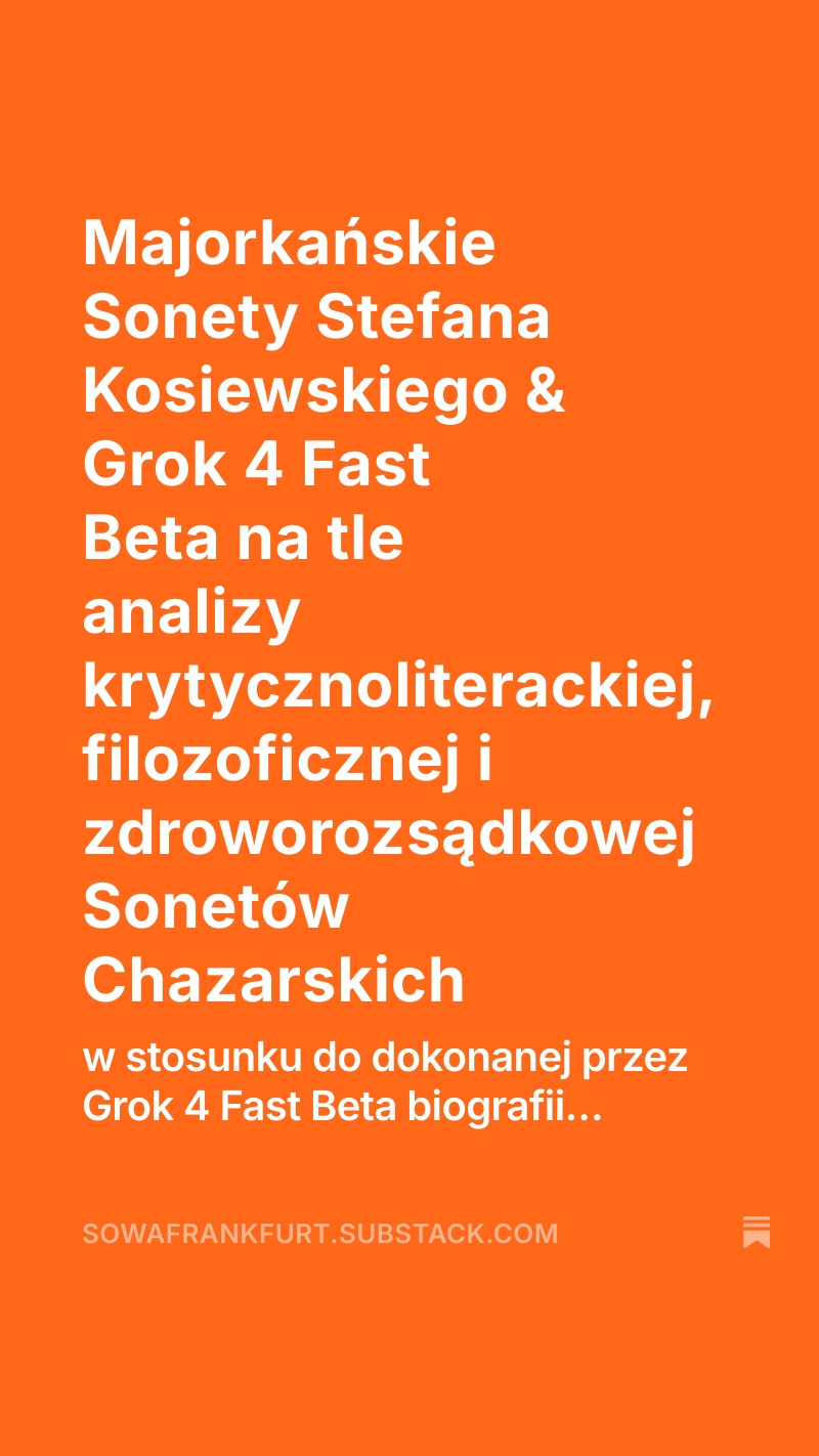 Majorkańskie Sonety Stefana Kosiewskiego & Grok 4 Fast Beta na tle analizy krytycznoliterackiej, filozoficznej i zdroworozsądkowej Sonetów Chazarskich