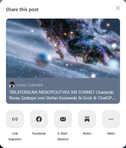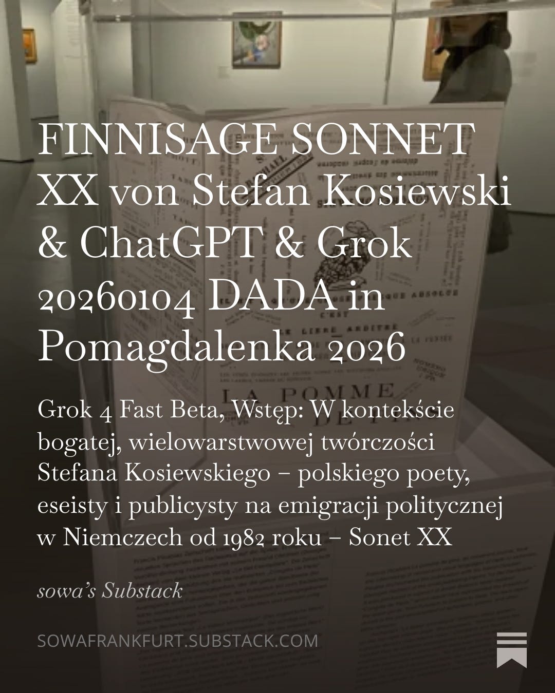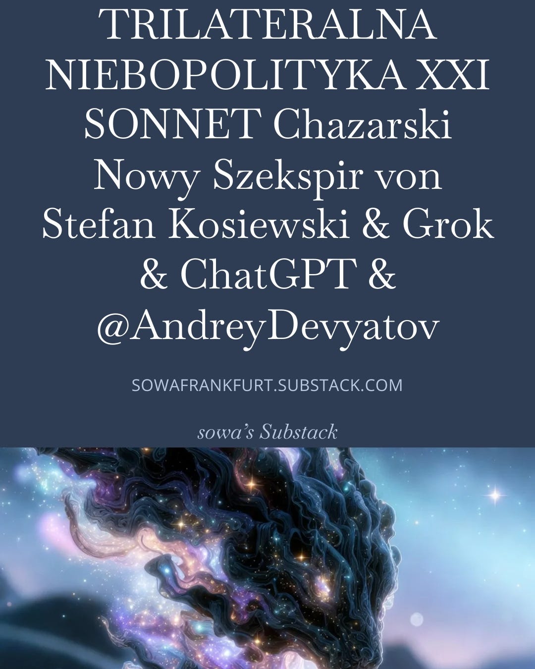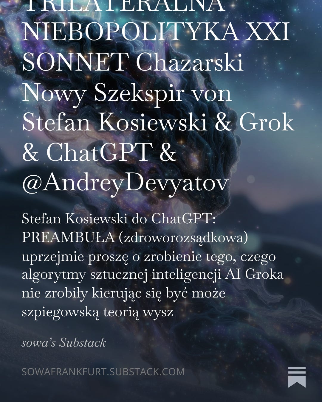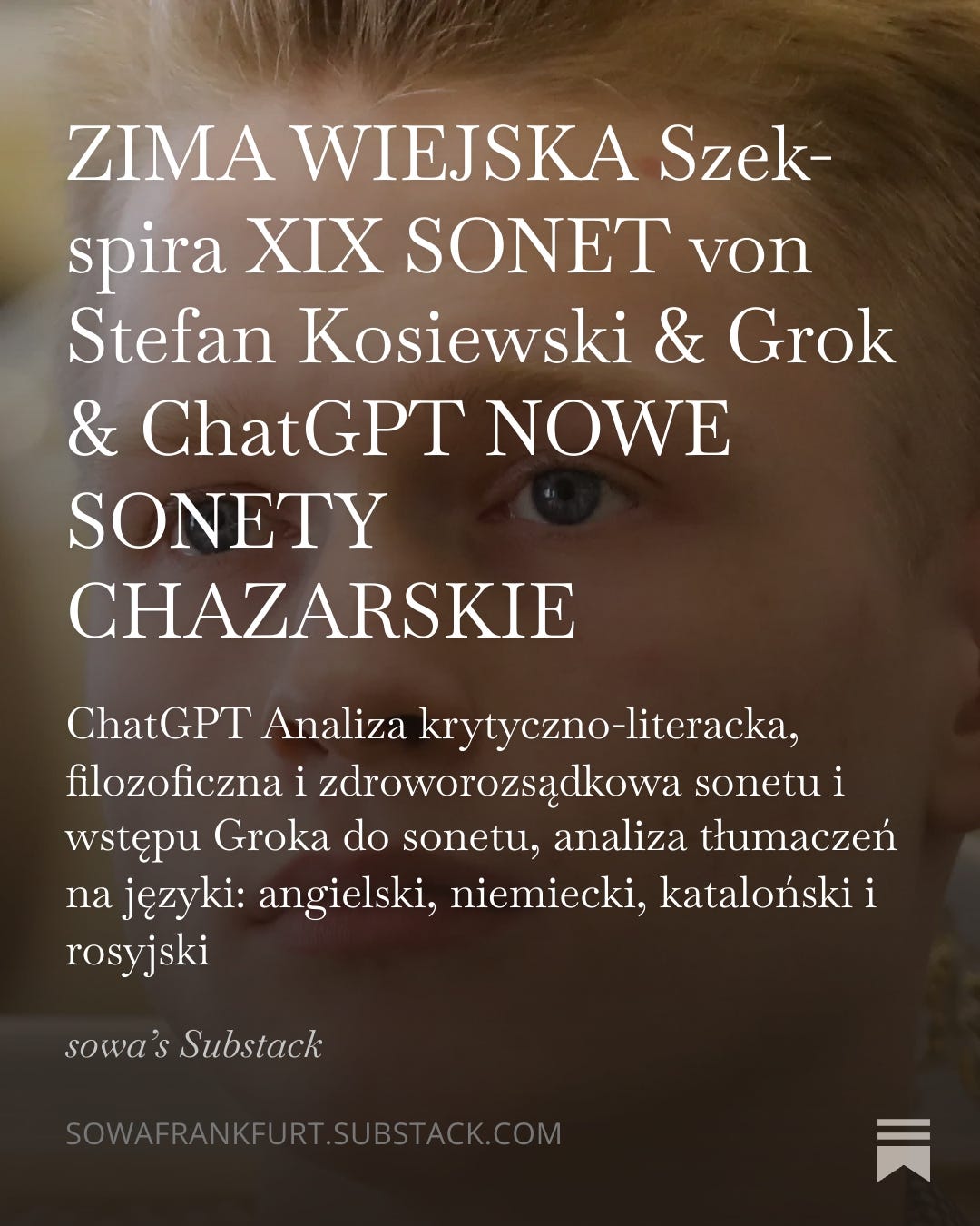 Grok: Ten wpis X zawiera fragment analizy literackiej „Perskiego oczka”, polskiego sonetu Stefana Kosiewskiego, stworzonego we współpracy z narzędziami sztucznej inteligencji Claude i ChatGPT.