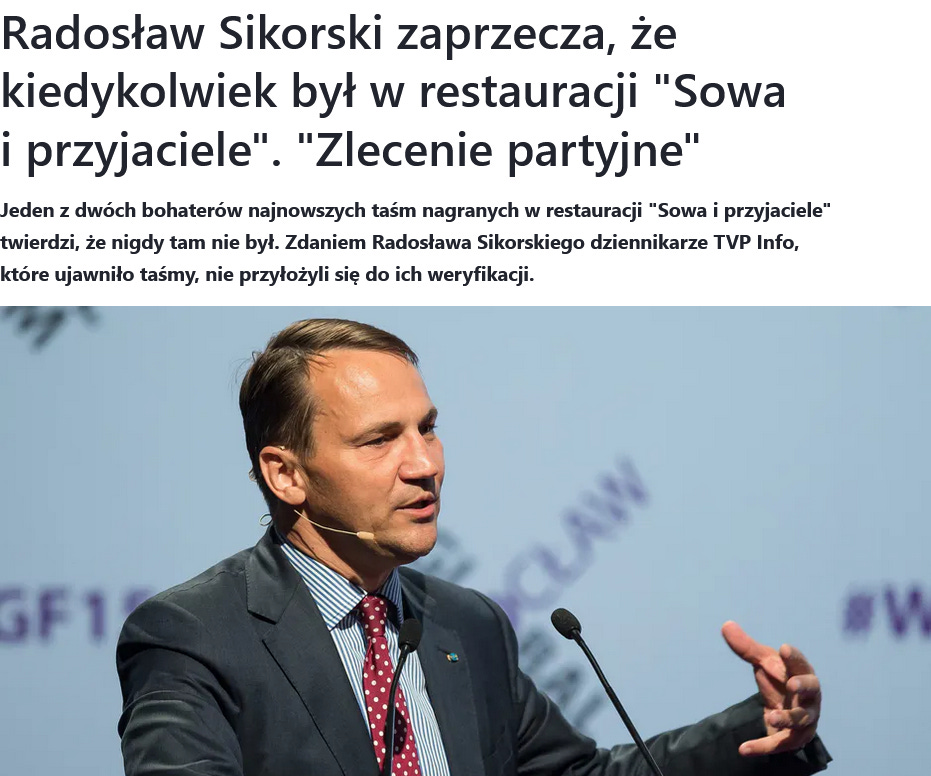 [5] Radosław Sikorski zaprzecza, że kiedykolwiek był w restauracji “Sowa i przyjaciele”. “Zlecenie partyjne” wiadomosci.wp.pl/radoslaw-sikorski-zaprzecza-ze-kiedykolwiek-byl-w-restauracji-sowa-i-przyjaciele-zlecenie-partyjne-6152958128453249a