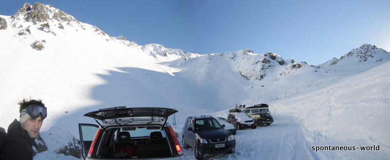 bottom hut, où l'on récupère deux français bloqués avec leur campervan qui ne peuvent pas monter plus haut sans 4x4 ni chaines.