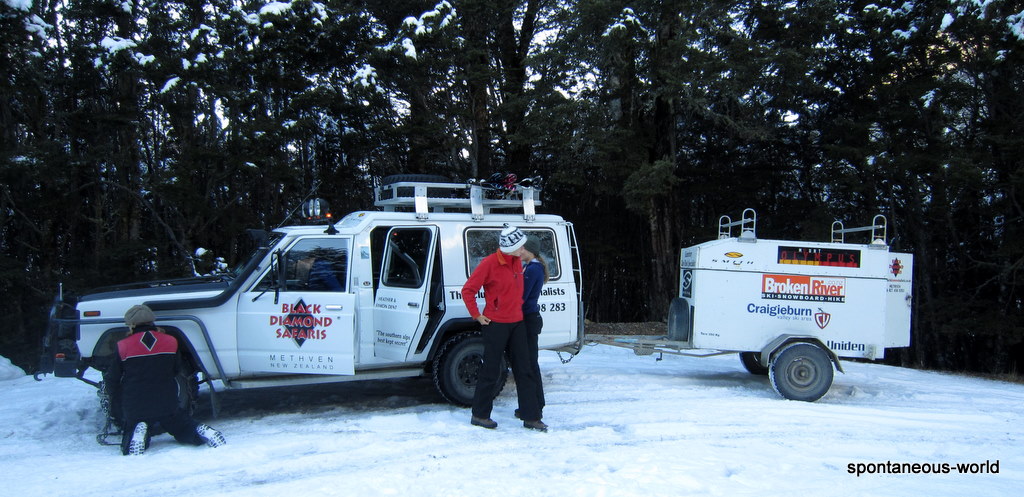 Para nuestro primer dia decidimos ir con Black Diamond Safari, negocio llevado por una pareja de esquiadores, Simon y Heather, cuyo fin es llevar esquiadores  a los diferentes ski fields, enseñarles como funciona e introducirles al mecanismo de los tow ropes.